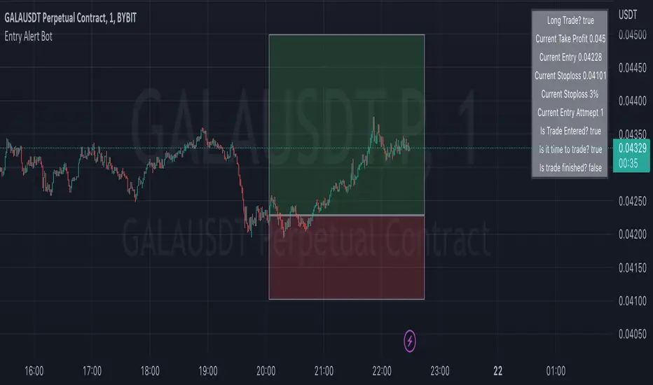 This bot is SIMPLY to trigger an external webhook. You simply enter you take profit, entry, and stop loss %, and it will auto-populate the variables listed to the calculated values. That is all this script does. It does draw the trade on the chart for you. If you want a long, and price crosses up over you entry it will trigger the webhook. If you want a short and price crosses below your entry, it will trigger the webhook.