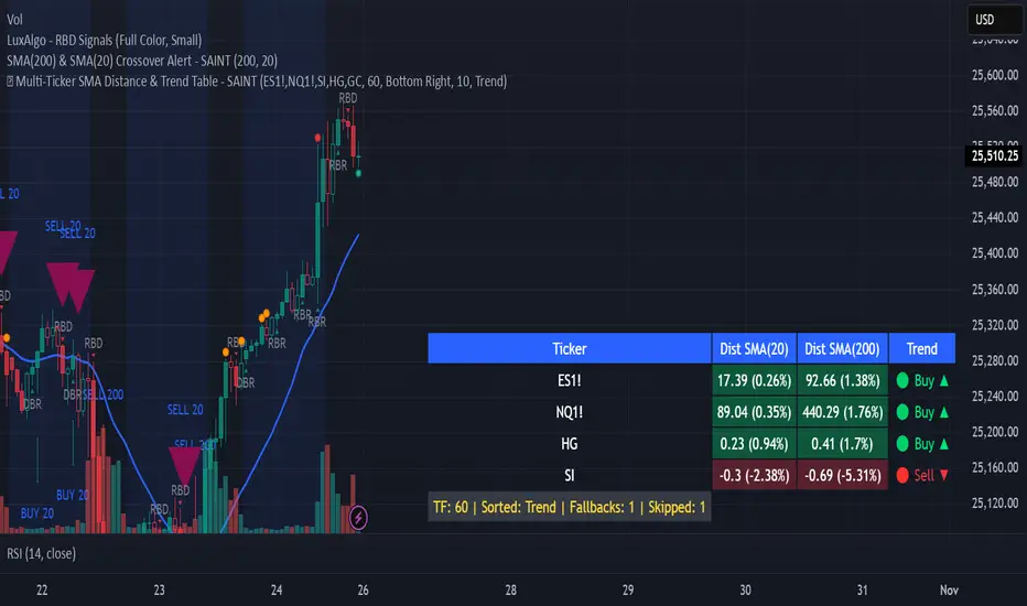 📊 Multi-Ticker SMA Distance & Trend Table - SAINT