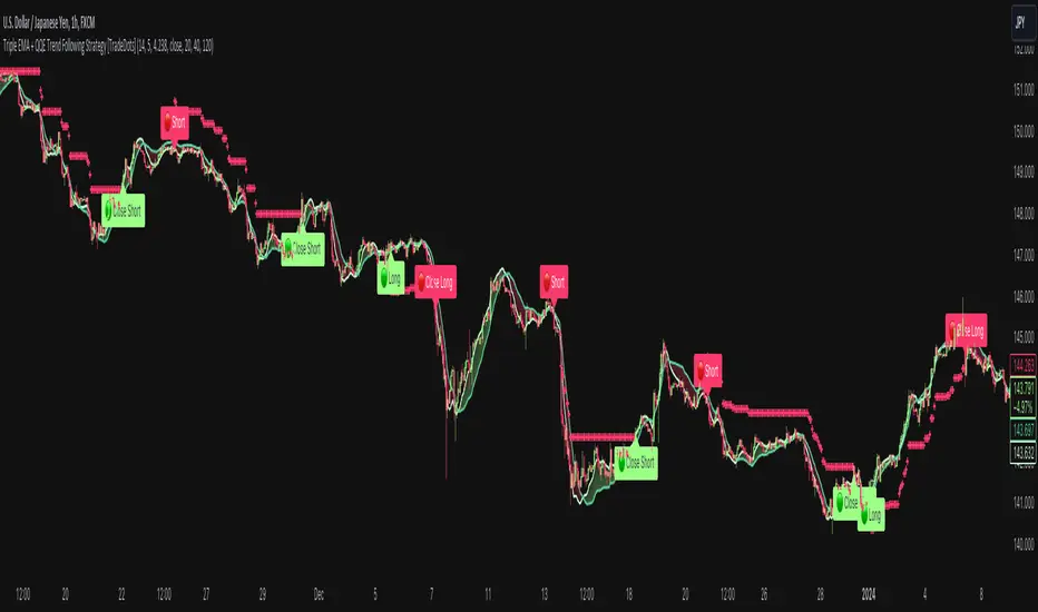 Triple EMA + QQE Trend Following Strategy [TradeDots]