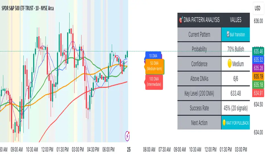 Professional-grade moving average indicator that combines traditional DMA analysis with advanced pattern recognition and probabilistic forecasting.