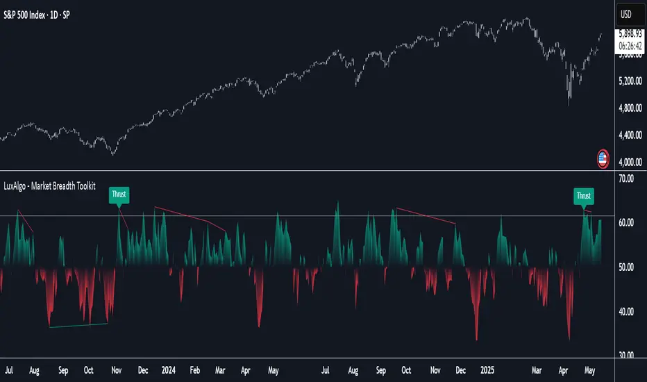 On the right side, we have the Market Thrust as the delta between advancing minus declining volume weighted.