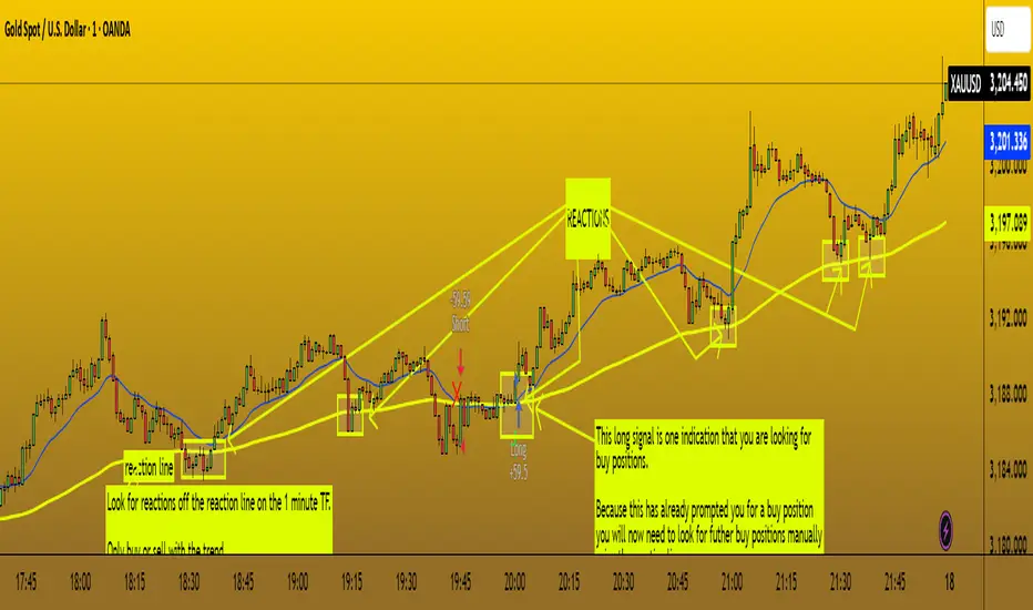 This strategy works both for buys and sells using the reaction line to guide your position against the reactions.