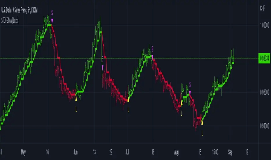 STD-Filtered, Gaussian Moving Average (GMA) [Loxx] is a 1-4 pole Ehlers Gaussian Filter with standard deviation filtering. This indicator should perform similar to Ehlers Fisher Transform.