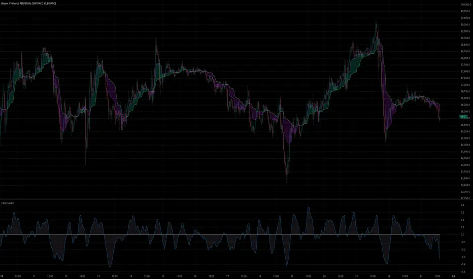 Employing a two-pole design, the SuperSmoother filter reduces high-frequency noise with minimal lag. It is engineered to preserve trend integrity while offering a smooth output even in noisy market conditions.