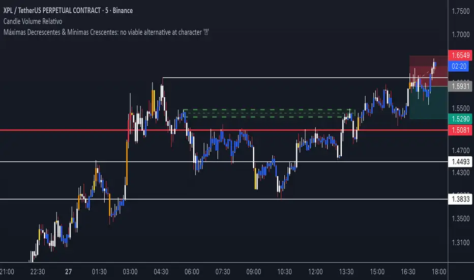 Assinala pela cor do candle o volume relativo. Parametros customizáveis