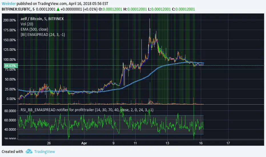 Script to assess the combination of RSI, BB & EMASPREAD triggers for profittrailer v2. The script also includes an alert mechanism, use it via the standard tradingview alerts.