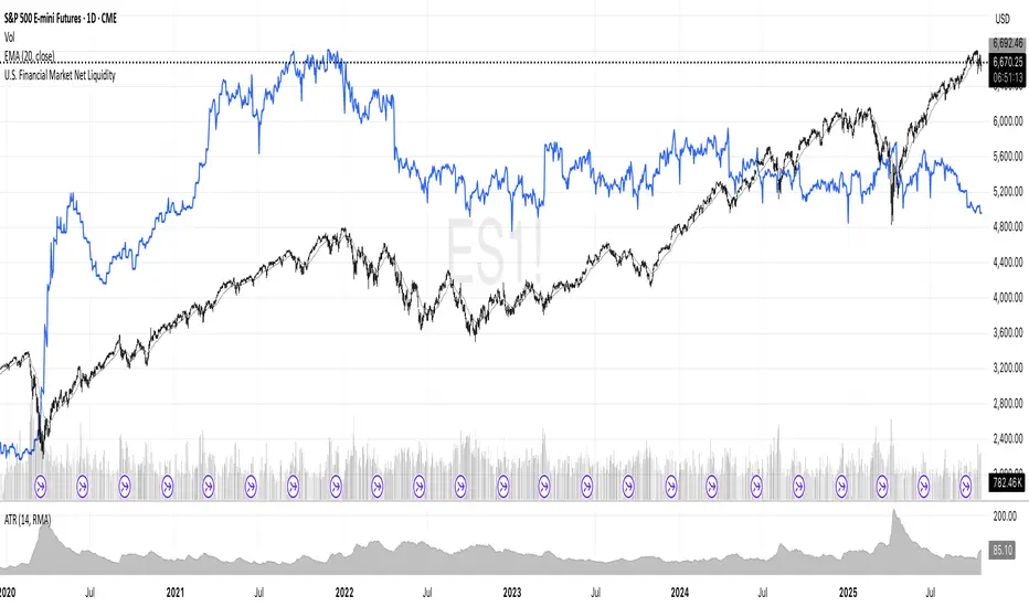 The calculation method is to subtract the U.S. Treasury General Account balance (WDTGAL) and then the Overnight Reverse Repo balance (RRPONTSYD) from the Federal Reserve's balance sheet total (USCBBS).