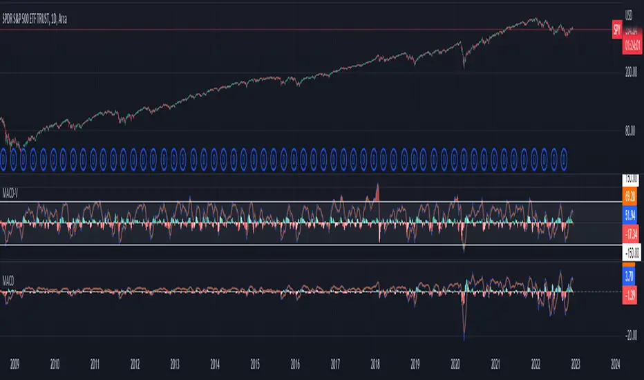 - MACD Line = [[EMA(12,close) - EMA(26,close)] / ATR(26)] * 100