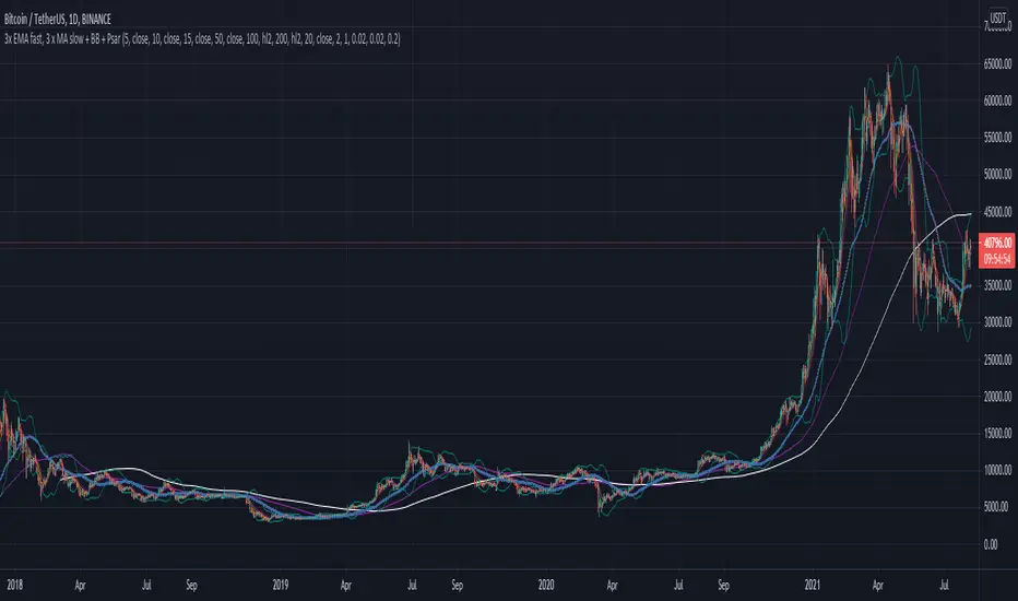3x EMA fast, 3 x MA slow + BB + Psar