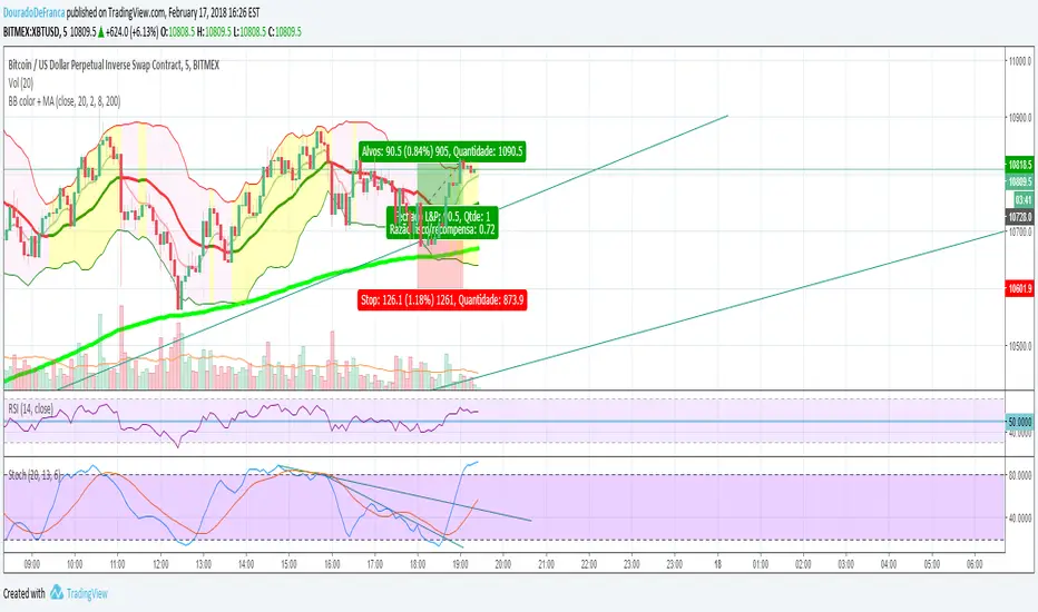 Posições abertas com as bandas de bollinger junto a EMA 200