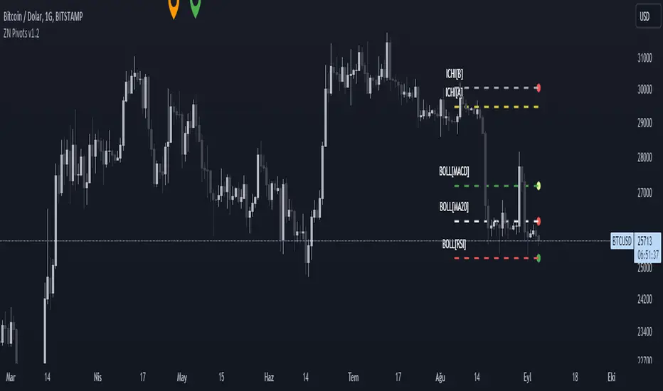 This indicator is aimed at showing the pivot points of the trend by using Ichimoku cloud and Bollinger bands.