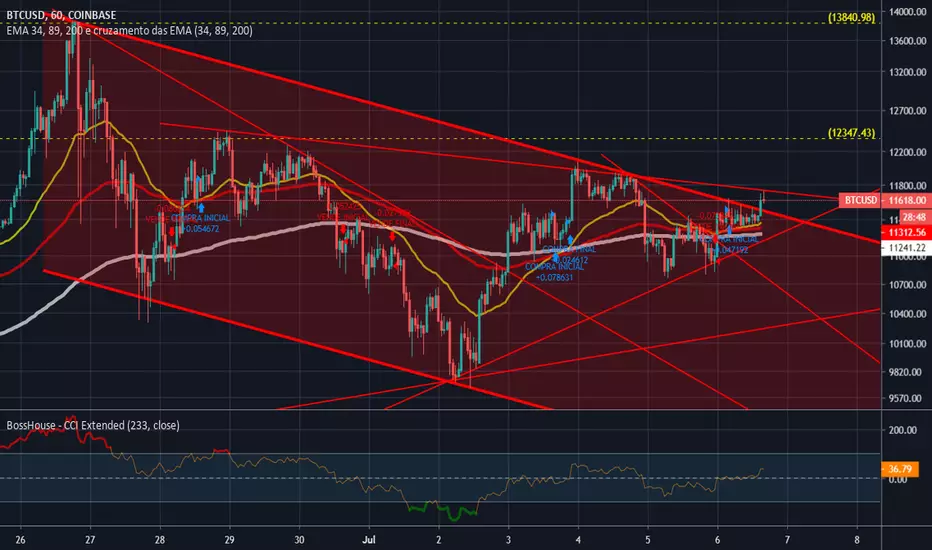Médias exponenciais 34, 89 e 200 e estrategia de compra e venda com cruzamento das medias.