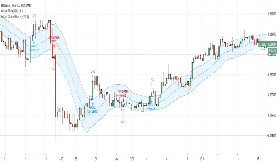 This is a script with alerts for standard Keltner Channer Strategy you can find in TradingView.