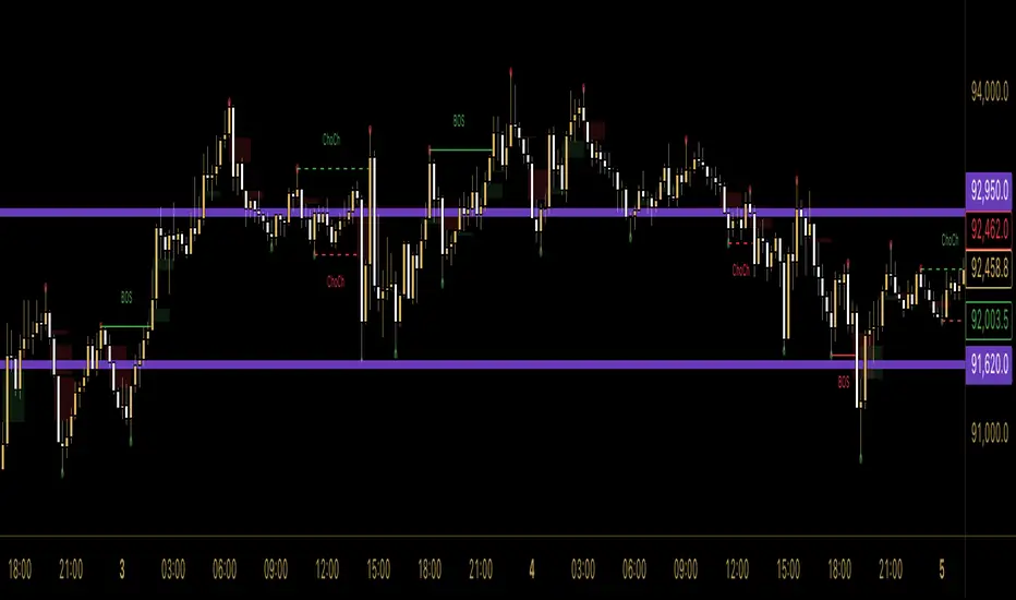 Visual Control: Toggle specific features (BOS, ChoCh, FVG) on or off and fully customize colors to blend with your chart theme.