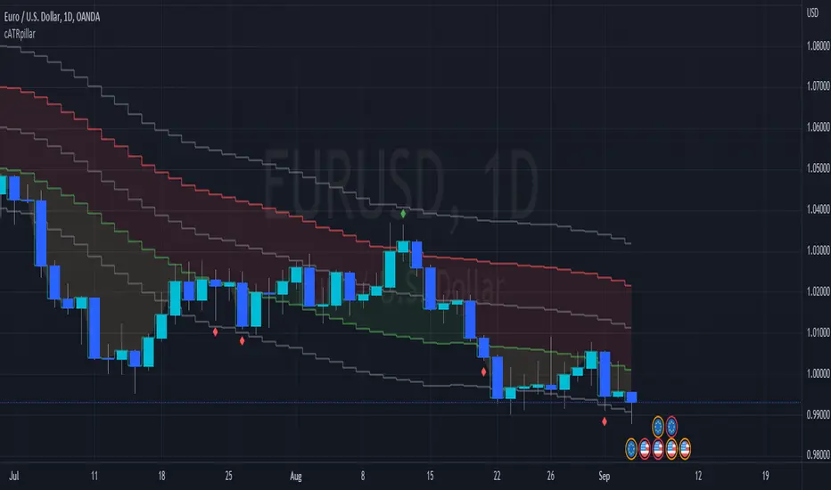 Release Notes: This indicator is used to identify range breakouts using an ATR multiplier. My first script, Im sure there are indies out there like this, but this my favorite way to identify breakouts and trends.-When used with a strength oscillator, cATRpillar can be useful in identifying ATR breakouts.