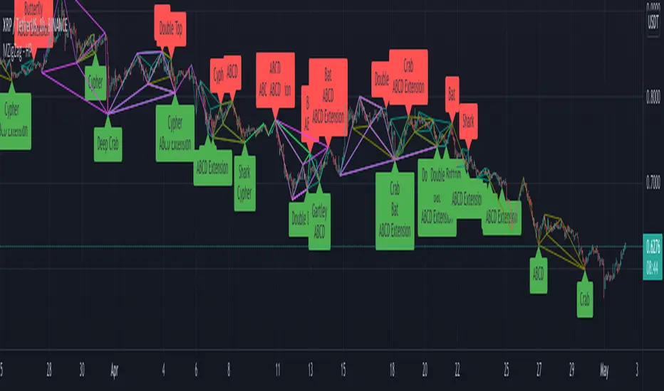 Added ABCD patterns and Double Top/Bottom patterns to this script. With multiple zigzags running, display can become messy. Disable the ones you don't use in your input parameters.Notas de Lançamento