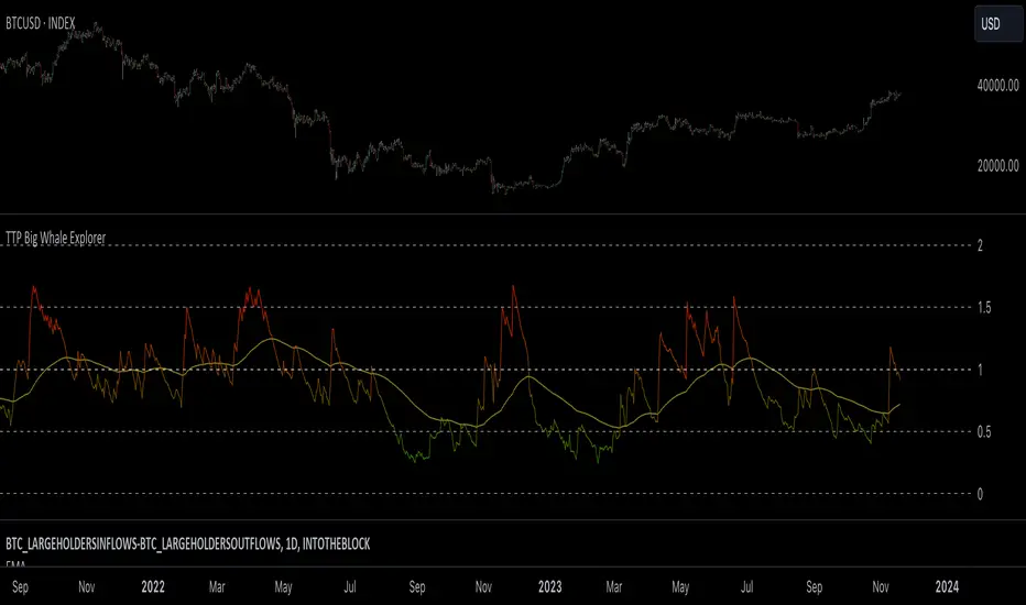 The Big Whale Explorer is an indicator that looks into the ratio of large wallets deposits vs withdrawals.