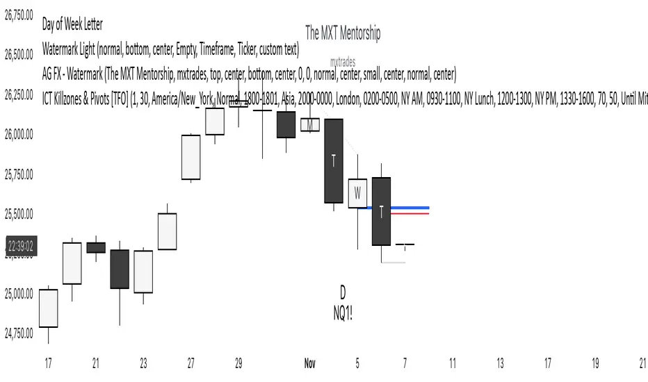 Letters printed on the Daily candle corresponding the day of the trading week it is on. Used for weekly range logic