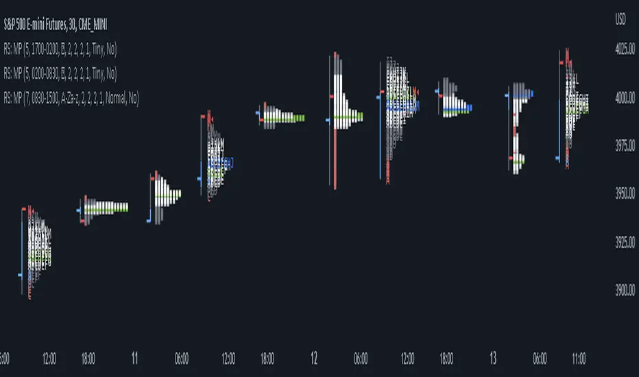 A Market Profile (time price opportunity) implementation with an option to mark a point of control (POC) based on volume.