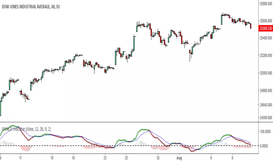 Volume-Weighted MACD Indicator. You can turn volume-weighted off to get "regular" MACD, and you can change the scaling of the histogram to make it stand out more.