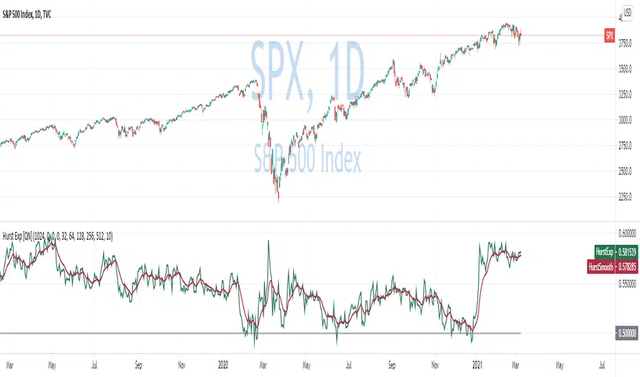 Hurst Exponent is computed using Rescaled range (R/S) analysis.