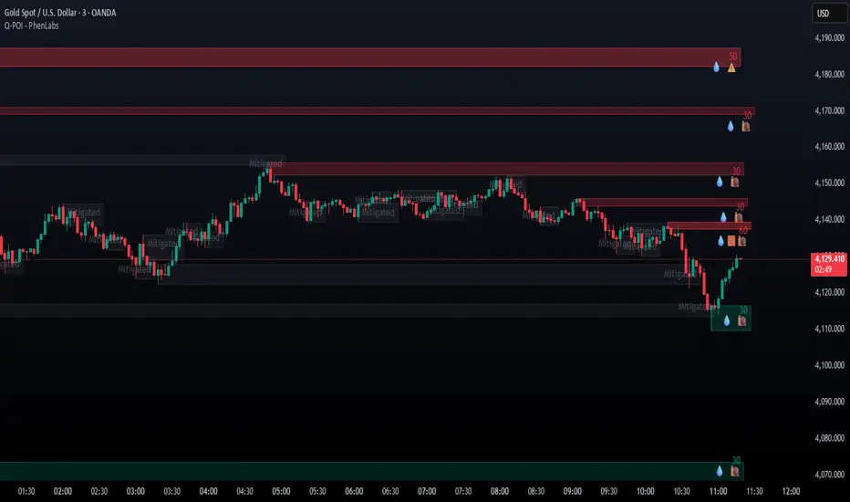The “Qualified” POI Scorer helps intermediate traders overcome "analysis paralysis" by filtering Smart Money Concepts (SMC) structures based on their probability. Instead of flooding your chart with every possible Order Block, this script assigns a proprietary “Quality Score” (0-100) to each zone. It analyzes the strength of the displacement, the presence of imbalances (FVG), and liquidity mechanics to determine which zones are worth your attention. It is designed to clean up your charts and enforce discipline by visually fading out low-quality setups.