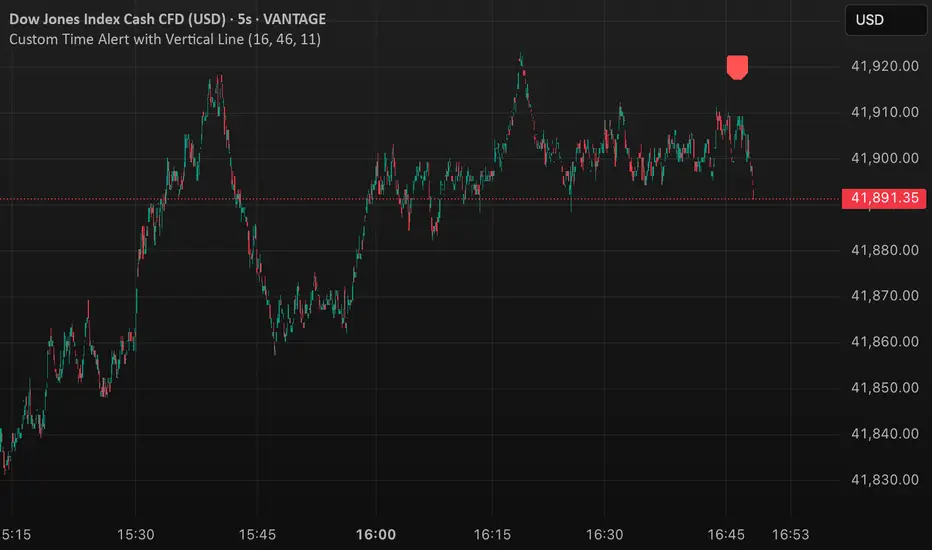 This script is a time-based alert system designed for TradingView. It allows traders to set a specific hour and minute for alerts and provides visual indicators on the chart, including a marker when the alert triggers and a vertical line at the alert time.