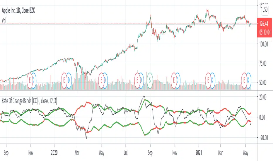 The Rate Of Change Bands were created by Vitali Apirine (Stocks and Commodities March 2021 pg 14) and this indicator is a great method to not only check the momentum but also check the trend strength as well. I have color coded the lines so buy when the line turns green and sell when it turns red.