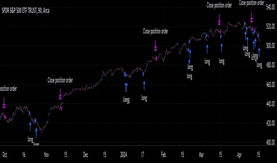 To illustrate a possible output in the image (buy and sell orders) of this strategy container, we are using here an indicator that provides buy and sell signals, only for illustration purposes. Again, this is a strategy container, not a strategy. So we need to include an indicator with this published strategy to be able to show the strategy execution.