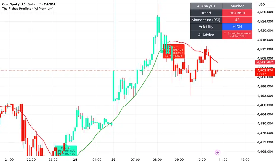 - AI Analysis Dashboard: A real-time monitor panel that evaluates Trend, Momentum (RSI), and Volatility to provide actionable advice (e.g., "Strong Uptrend", "Overbought - Wait for Pullback", or "Low Volatility - Caution").