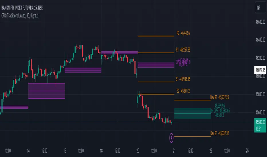 1. CPR with traditional support and resistance levels (S1-S5 & R1-R5).