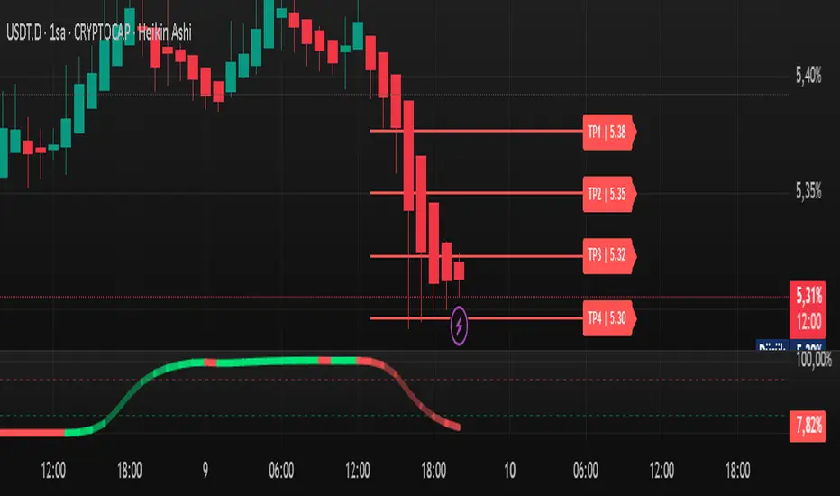 This indicator automatically calculates and charts both Fibonacci-based target TPs (TPs) and ATR dynamic distance-based classic TPs.