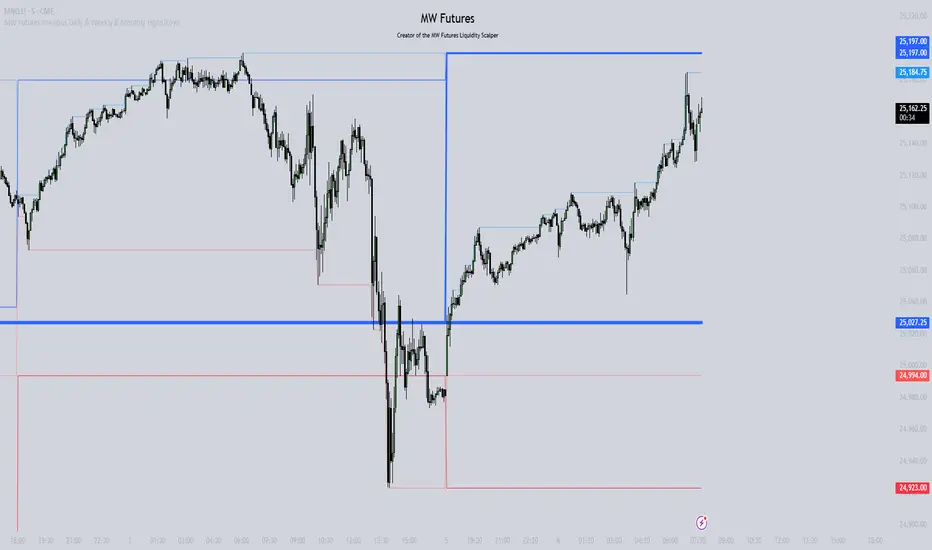 Tired ofguessing where the market's key support and resistance levels truly lie? In the fast-paced world of futures trading, pinpointing yesterday's highs/lows, last week's pivots, or the prior month's extremes can mean the difference between a winning scalp and a frustrating loss. Introducing the MW Futures Previous Highs/Lows Indicator – the simple, reliable tool you've been waiting for to unlock precision in continuation and reversal setups.