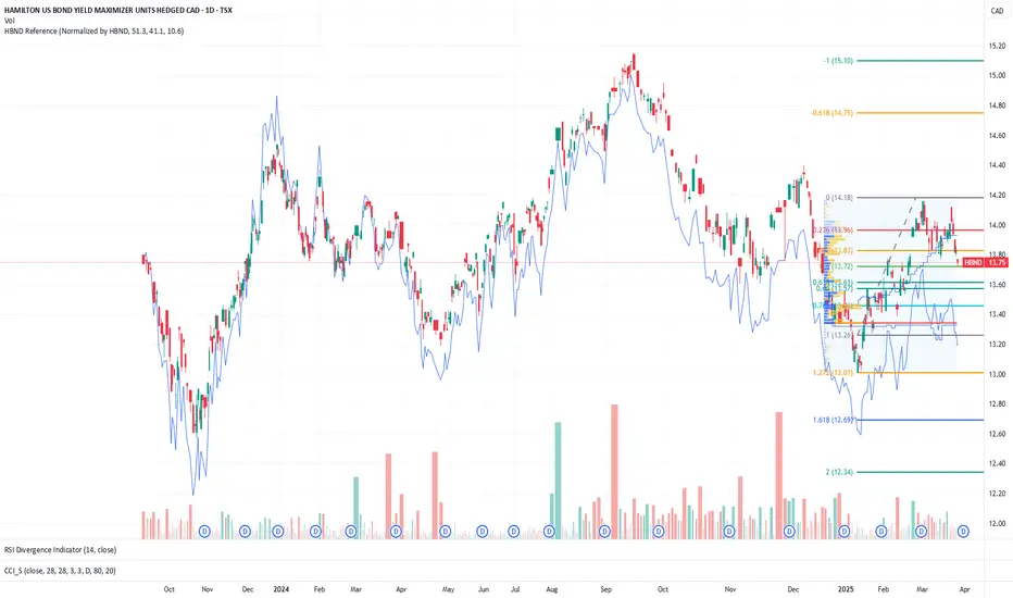 Chart the HBND as an index based on weighting found on the HBND Etf website. For best results display the adjusted close since HBND is a high yielding fund. The weightings have to be updated manually.