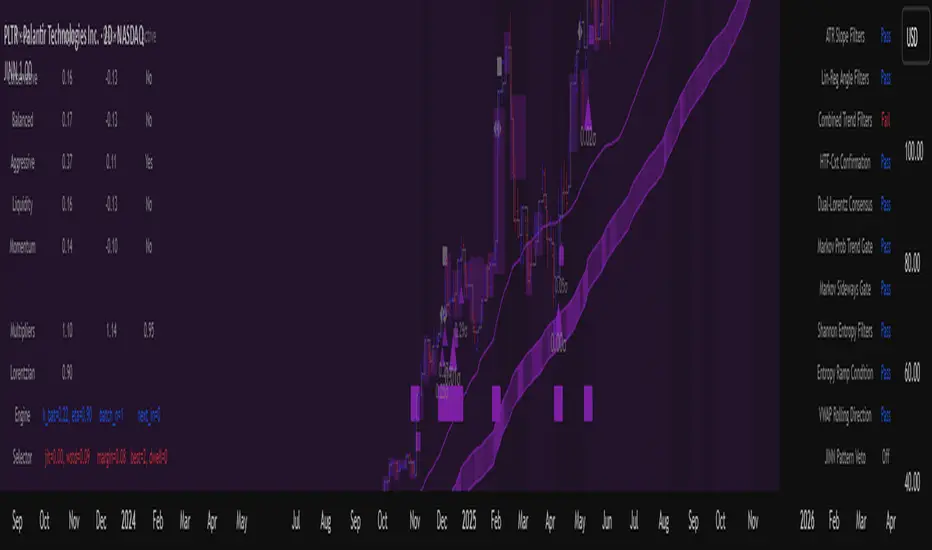 JINN (Joint Investment Neural and Network) represents a paradigm shift from static indicators to a living, adaptive analytical ecosystem. Traditional tools provide a fixed snapshot of the market. JINN operates on a fundamentally different premise: it treats the market as a dynamic, regime-driven system. It processes market data through a hierarchical suite of advanced, interacting models, arbitrates their outputs through a rules-based engine, and adapts its own logic in real-time.