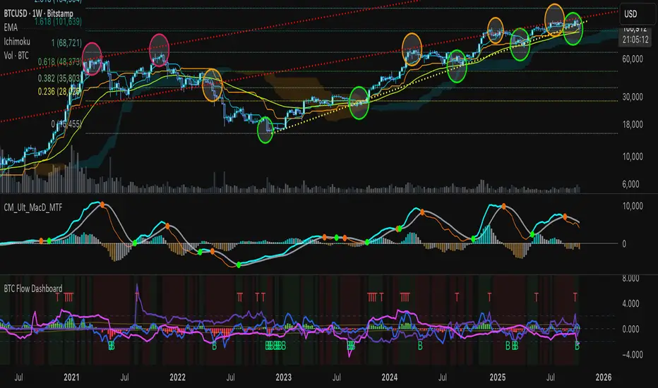 Works best on weekly or monthly timeframes for macro cycle analysis.