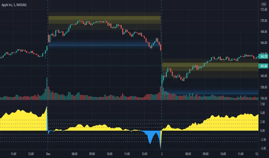 Library "DailyDeviation"Helps in determining the relative deviation from the open of the day compared to the high or low values.