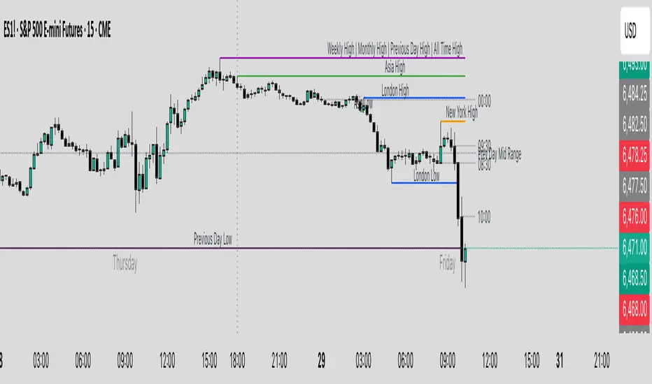 Atualizado Key Levels & Session Highs/Lows by Odegos