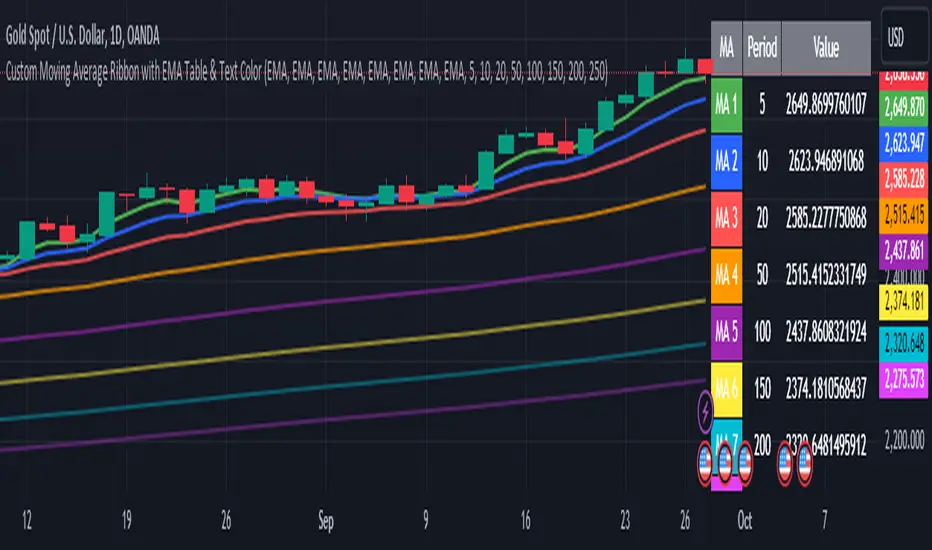 Custom Moving Average Ribbon with EMA Table & Text Color