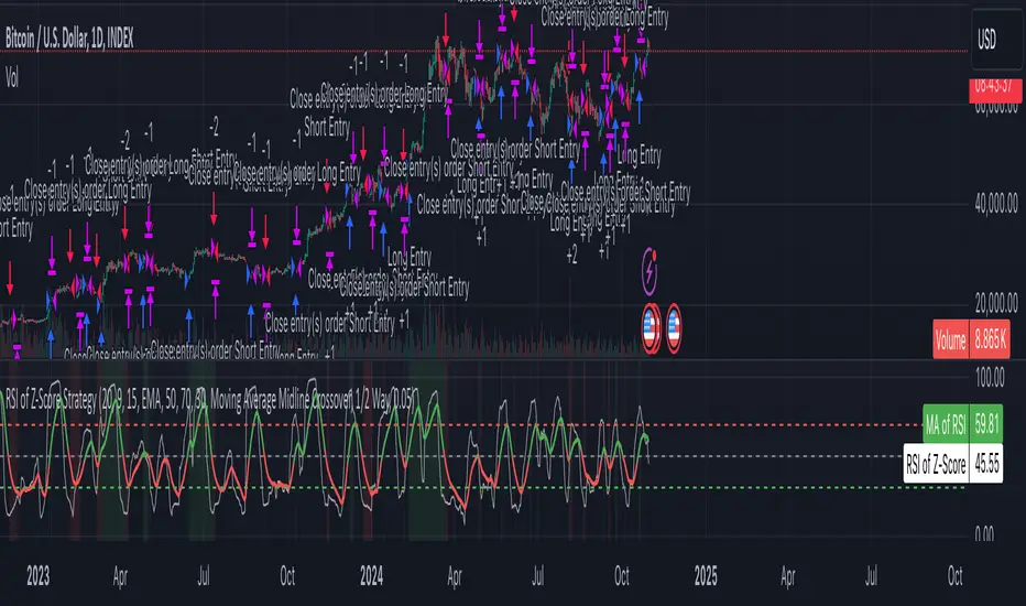 The Z-Score RSI Indicator is an experimental take on momentum analysis. By applying the Relative Strength Index (RSI) to a Z-score of price data, it measures how far prices deviate from their mean, scaled by standard deviation. This isn’t your traditional use of RSI, which is typically based on price data alone. Nevertheless, this unconventional approach can yield unique insights into market trends and potential reversals.