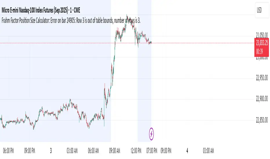 The Frahm Factor Position Size Calculator is a powerful evolution of the original Frahm Factor script, leveraging its volatility analysis to dynamically adjust trading risk. This Pine Script for TradingView uses the Frahm Factor’s volatility score (1-10) to set risk percentages (1.75% to 5%) for both Margin-Based and Equity-Based position sizing. A compact table on the main chart displays Risk per Trade, Frahm Factor, and Average Candle Size, making it an essential tool for traders aligning risk with market conditions.