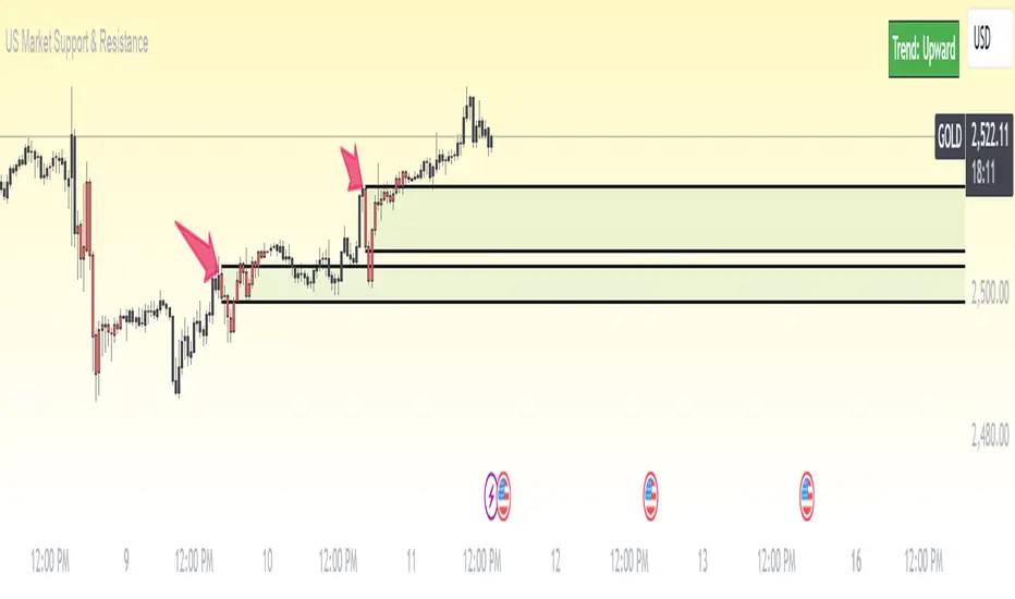 US Market Support & Resistance Indicator (For 5-30 Minute Timeframes)