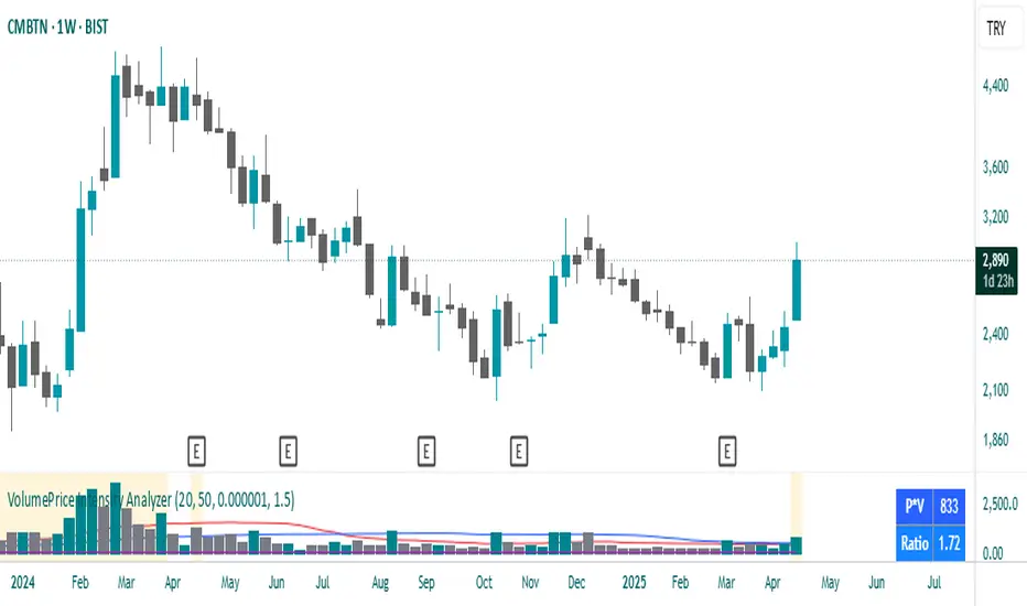 The VolumePrice Intensity Analyzer is a Pine Script v6 indicator designed to measure market activity intensity through the trading value (Price * Volume, scaled to millions). It helps traders identify significant volume-price interactions, track trends, and gauge momentum by combining volume analysis with trend-following tools.