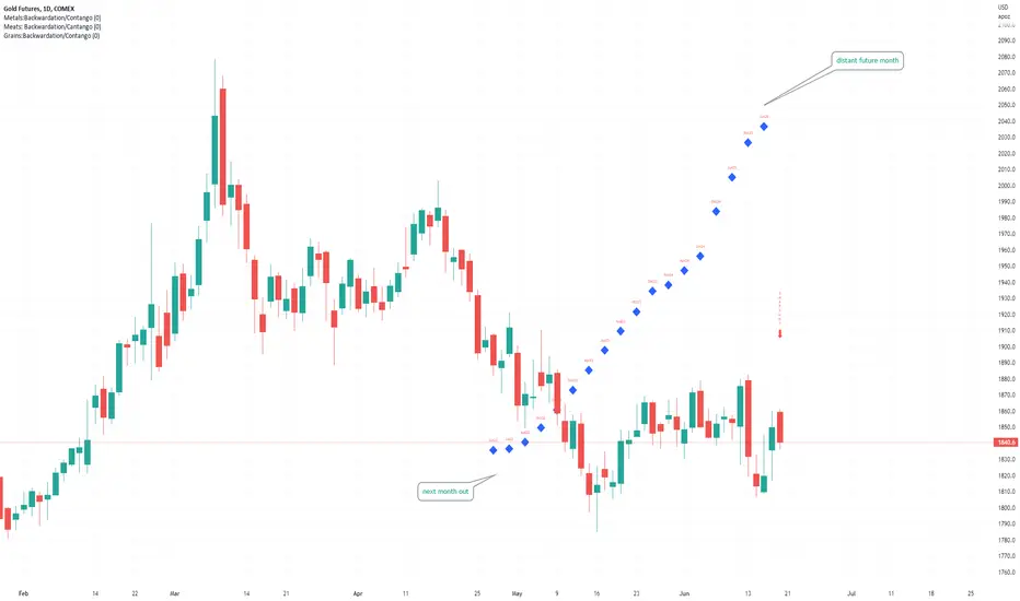 Note: indicator does not map to time axis in the same way as price; it simply plots the progression of contract months out into the future; left to right; so timeframe DOESN'T MATTER for this plot