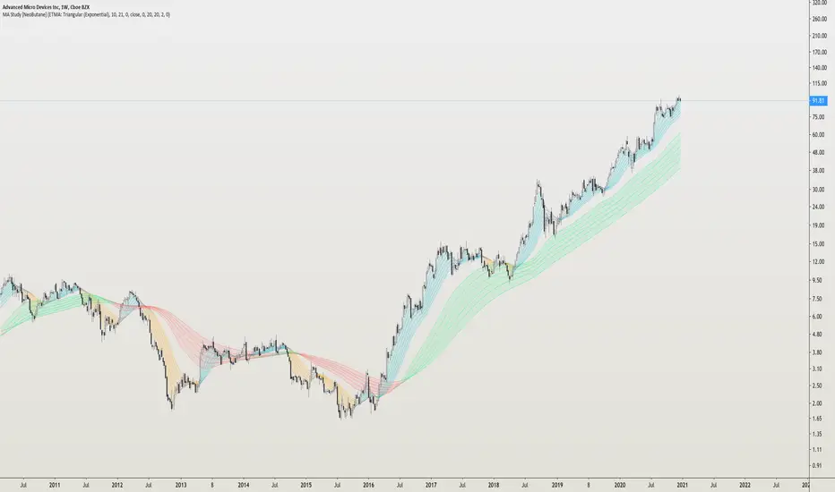 A study of moving averages that utilizes different tricks I've learned to optimize them. Included is Bollinger Bands, Guppy (GMMA) and Super Guppy.