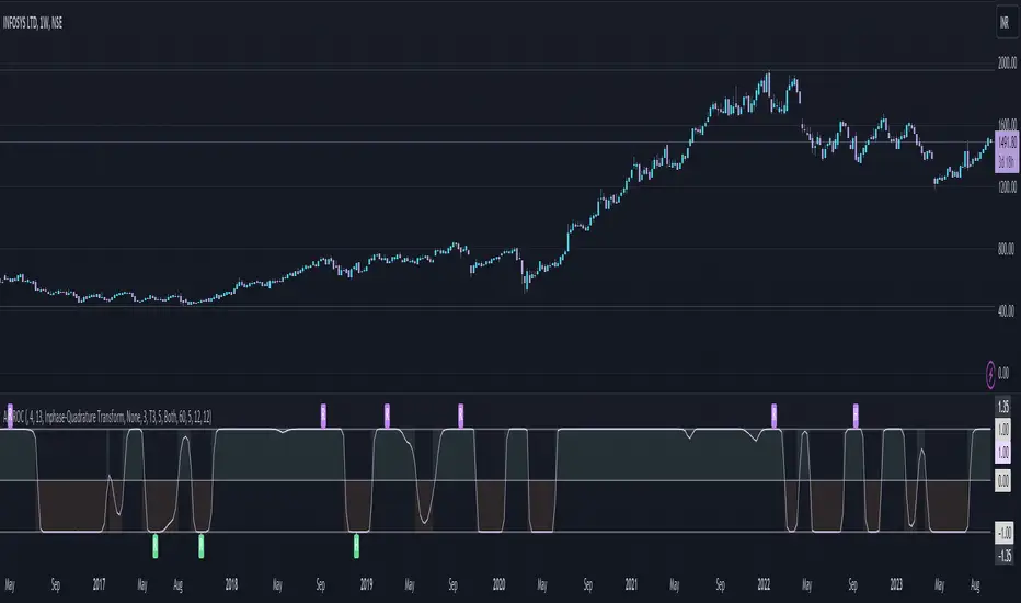 Hello community, here I applied the Inverse Fisher Transform, Ehlers dominant cycle determination and smoothing methods on a simple Rate of Change (ROC) indicator