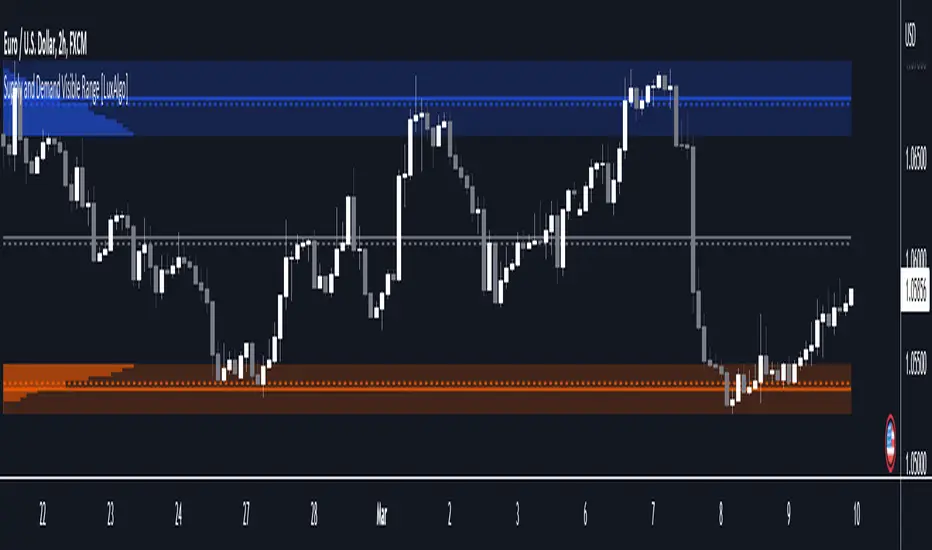 The Supply and Demand Visible Range indicator displays areas & levels on the user's chart for the visible range using a novel volume-based method. The script also makes use of intra-bar data to create precise Supply & Demand zones.