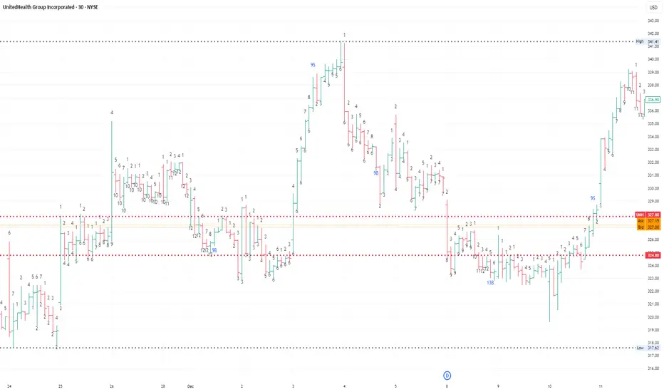 All counts are displayed clearly on the chart using stable hybrid numbers and dots, avoiding repetitions, overlaps, and visual distortions when zooming or switching timeframes.