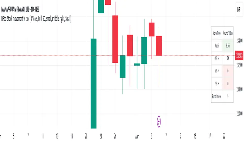 Burst Power Calculation: A measure of significant price moves (5%, 10%, 19%) with counts of occurrences for each move type.