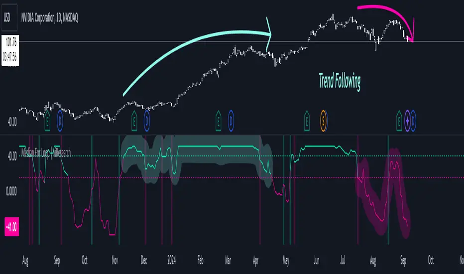 For Loop Scoring System: This system compares the current median value with past values within a user-defined range, generating a score that reflects how the market is trending. The loop mechanism dynamically sums the score based on whether the current median is higher or lower than historical medians, providing a clear signal of trend strength and direction.